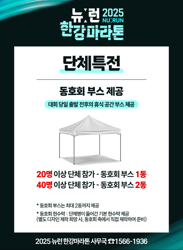 - 20명 이상 단체 참가 시, 동호회 부스 1동
