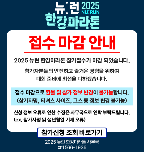 접수 마감 이후, 환불 및 참가 정보 변경이 불가능합니다.