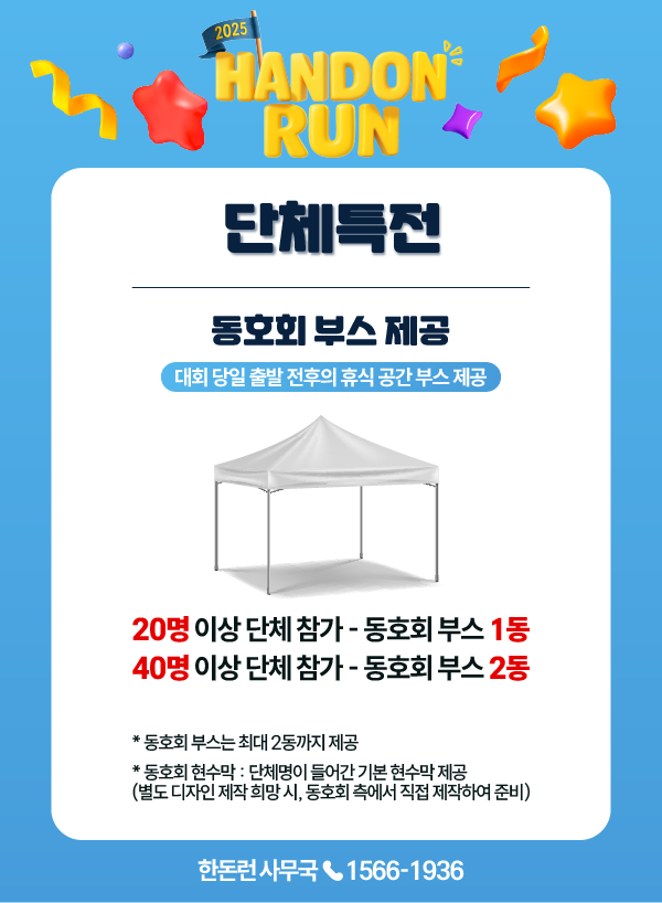 - 20명 이상 단체 참가 시, 동호회 부스 1동