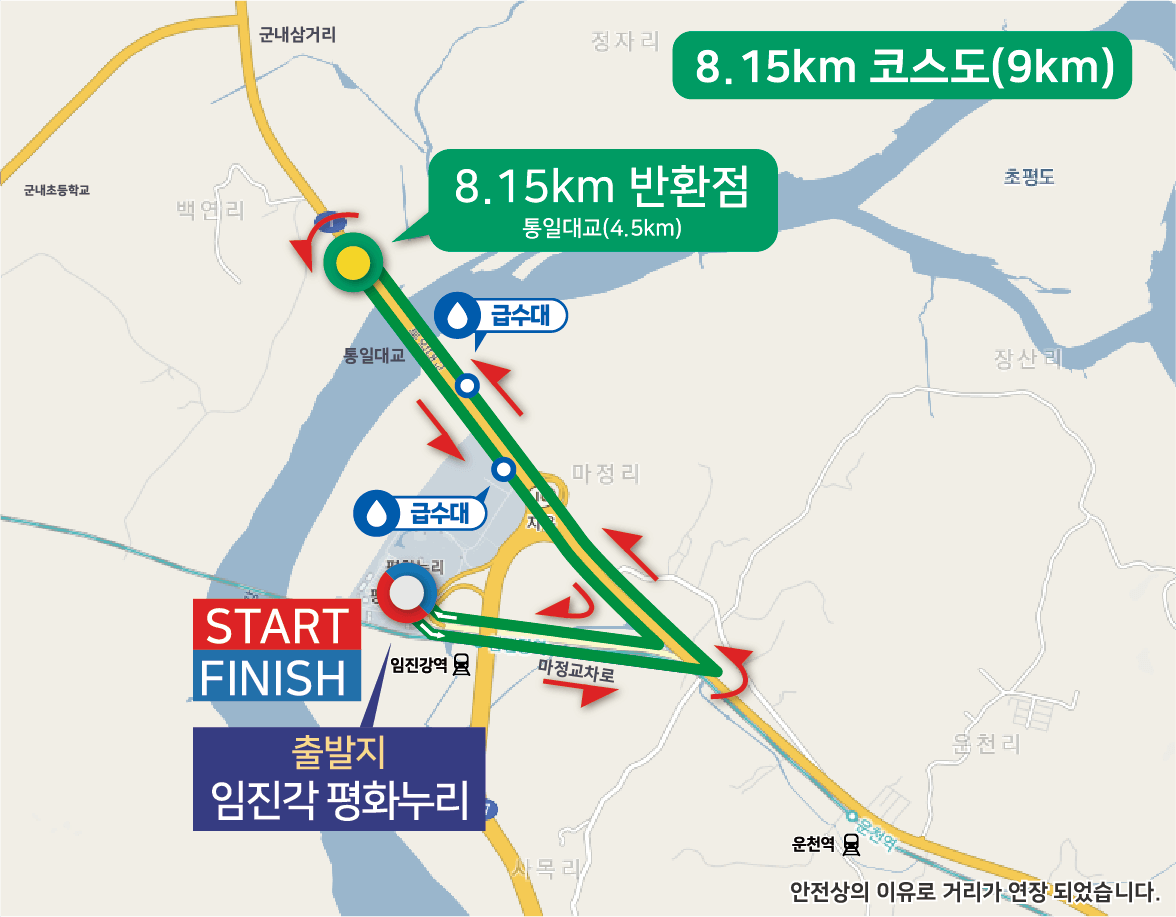 이번 대회의 8.15km 코스는 통일대교를 반환지점으로 설정할 예정이었습니다.