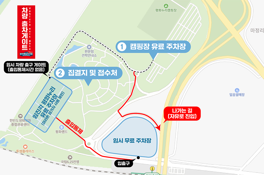 임진각 평화누리 주차장은 주자출발 09:30 ~ 12:00 정문 게이트 출차 금지