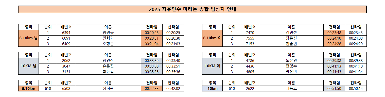 [종합 입상자] 2025 자유민주 마라톤 종합 시상 입상자 안내